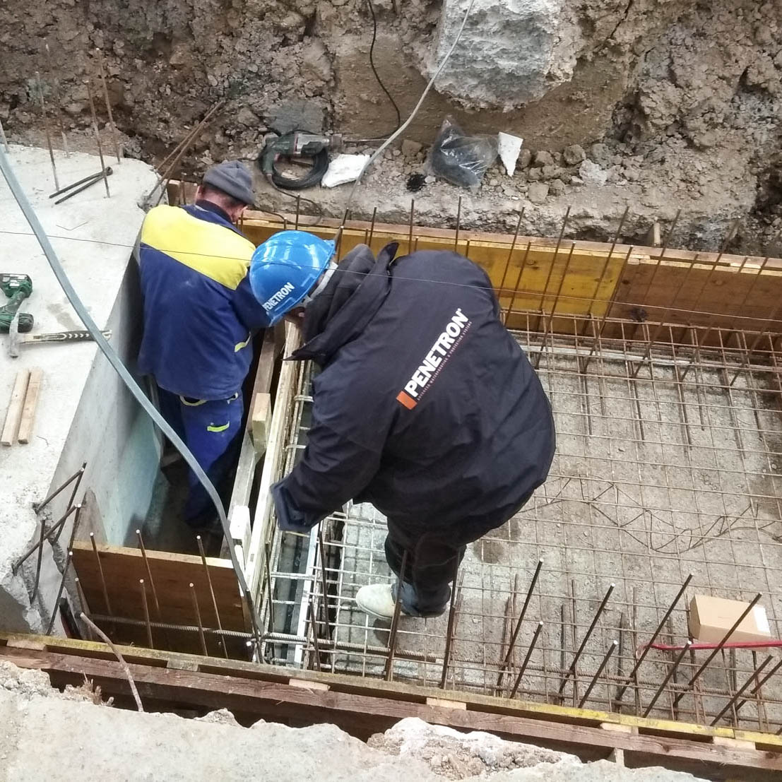 Izvedba rekonstrukcije objekta na kritičnih delih objekta temelji na armiranem betonu, ki vključuje dodatek PENETRON ADMIX in zaščiti betonskih stikov z ekspanzijskimi trakovi PENEBAR SW, ki ima dvojno funkcijo. Zaščitijo stik pred vdorom vode ter omogočajo, da v betonskih stikih preko reaktorjev le-ti, ob stiku z vodo, sprožijo rast netopljivih kristalov, ki dajejo betonu trajno moč hidroizolacije. Pri tem postane beton monolitna struktura, ki trajno zapira vse morebitne razpoke v betonu do širine 0,5mm.