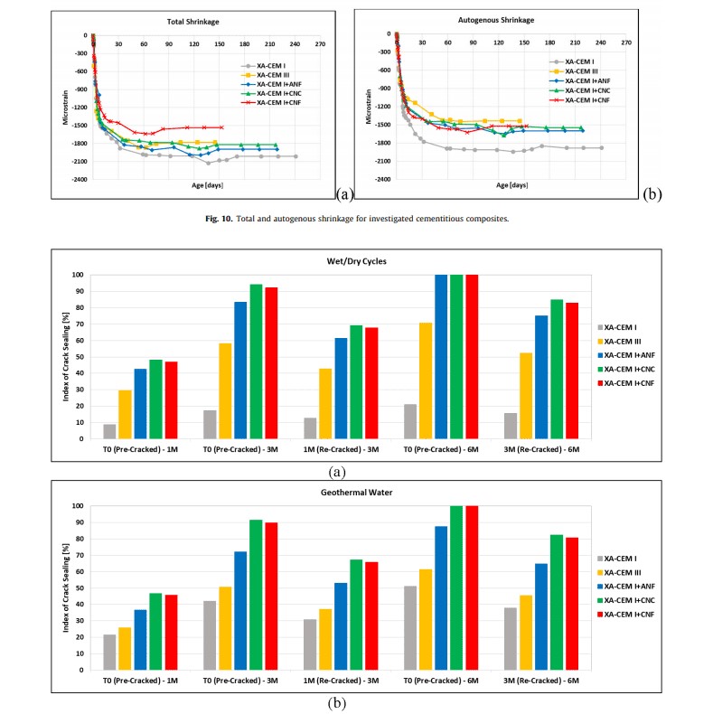Več kot eno stoletje po množični uvedbi v gradbeno industrijo je beton še vedno najbolj priljubljen gradbeni material. Dejstvo da ima veliko infrastrukturnih objektov probleme, je v zadnjih letih spodbudilo potrebo po ponovnem premisleku o postopku oblikovanja betonskih konstrukcij, da bi zmanjšali stroške vzdrževanja in podaljšali njihovo življenjsko dobo. To delo je bilo izvedeno v okviru tega projekta. Glavna ideja projekta je, da lahko dolgoročno obnašanje betonskih struktur v izjemno agresivnih pogojih izpostavljenosti zelo koristi pri uporabi visoko zmogljivih materialov v okviru pristopov oblikovanja, ki temeljijo na trajnosti. Projekt je prilagodil sestavo ultra visoko trpežnega betona (UHDC) z nadgradnjo koncepta visokozmogljivega cementnega kompozita / visokozmogljivega vlakna ojačanega cementnega kompozita (HPCC / HPFRCC) z vključitvijo prilagojenih sestavin nanodelcev, ki se med drugim osredotočajo na: o spodbujanju avtogene sposobnosti samozdravljenja. To delo prikazuje učinkovitost zgoraj omenjenega koncepta, doseženega z vključitvijo treh vrst nanokomponent v referenčni HPFRCC: nanovlaken aluminijevega oksida (0,25 mas.% Cementa), nanokristali celuloze (0,15 mas.% Cementa) in nanocelulozne celuloze. vlakna (0,15 mas.% cementa). Vpliv nanokomponent je bil analiziran z vidika mehanskih lastnosti, kot so upogibna in tlačna trdnost, ter na lastnosti krčenja in trajnosti, analiziran s pomočjo testov sorptivnosti na razpokanih, razpokanih in samozdravljenih vzorcih glede na izbrane scenariji agresivne izpostavljenosti, ki so reprezentativni za predvidene inženirske uporabe preiskovanih materialov.