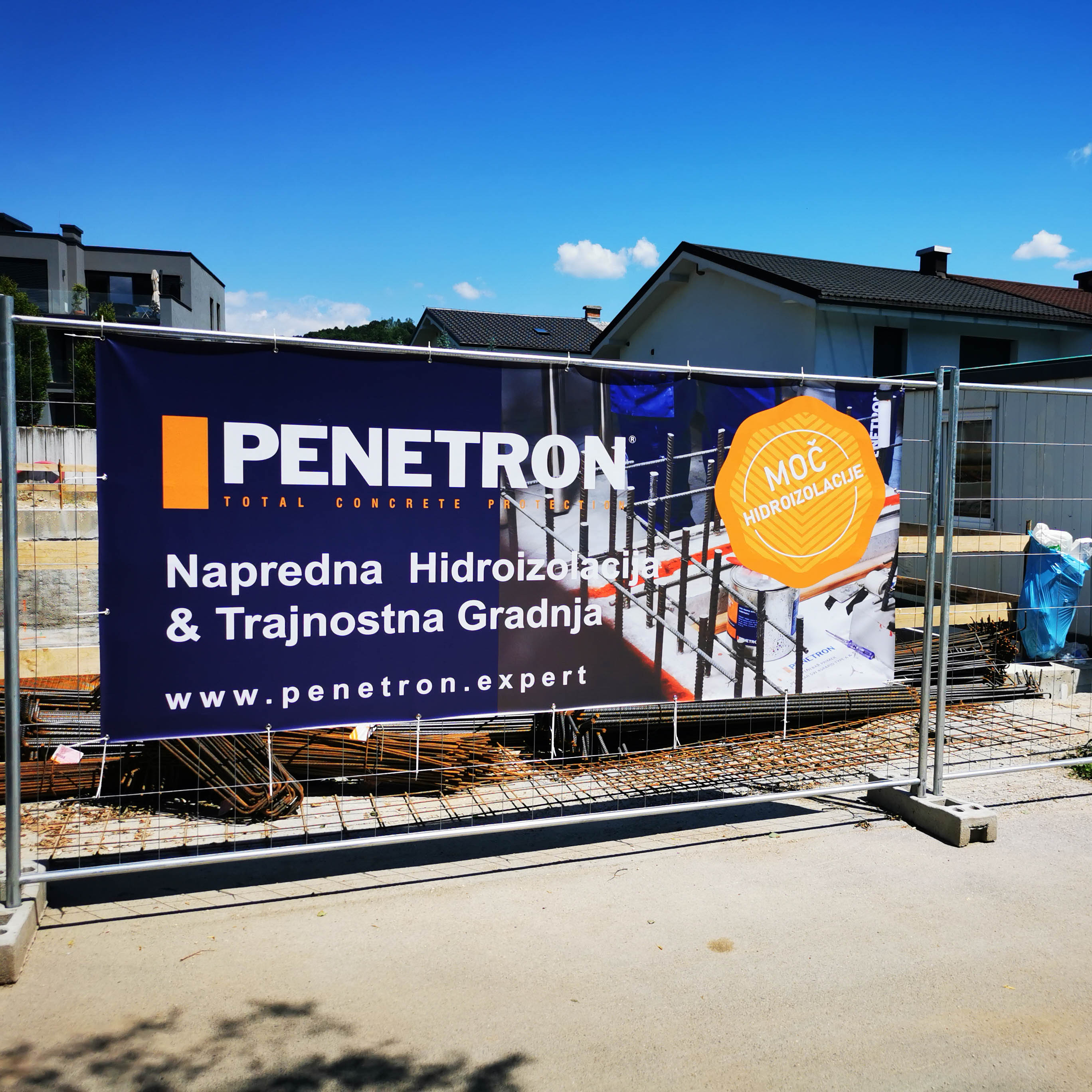 Zaradi maksimalnega izkoristka zemljišča, je najprej zaščitil gradbeno jamo z obodnimi piloti ter s 8 -10 cm betonskim torkret ovojem. Ker je zemljišče zahtevno smo investitorju svetovali, da betonu na vseh vkopanih delih konstrukcije doda PENETRON ADMIX. Ta omogoča, da beton z zorenjem in stranskimi mineralnimi produkti ob reakciji z aktivatorji, ki so v ADMIXU, povzročijo rast mikro kristalov, ki zaprejo vse pore, kapilarni trakt ter mikrorazpoke do širine 0,5 mm.