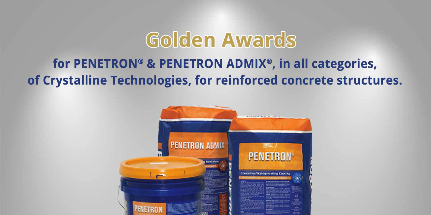 Z veseljem obveščamo, da sta proizvoda PENETRON® in PENETRON ADMIX® dobila zlati nagradi v vseh kategorijah kristalizirajočih izdelkov kot najboljša rešitev za popolno zaščito novih in obstoječih betonskih konstrukcij.