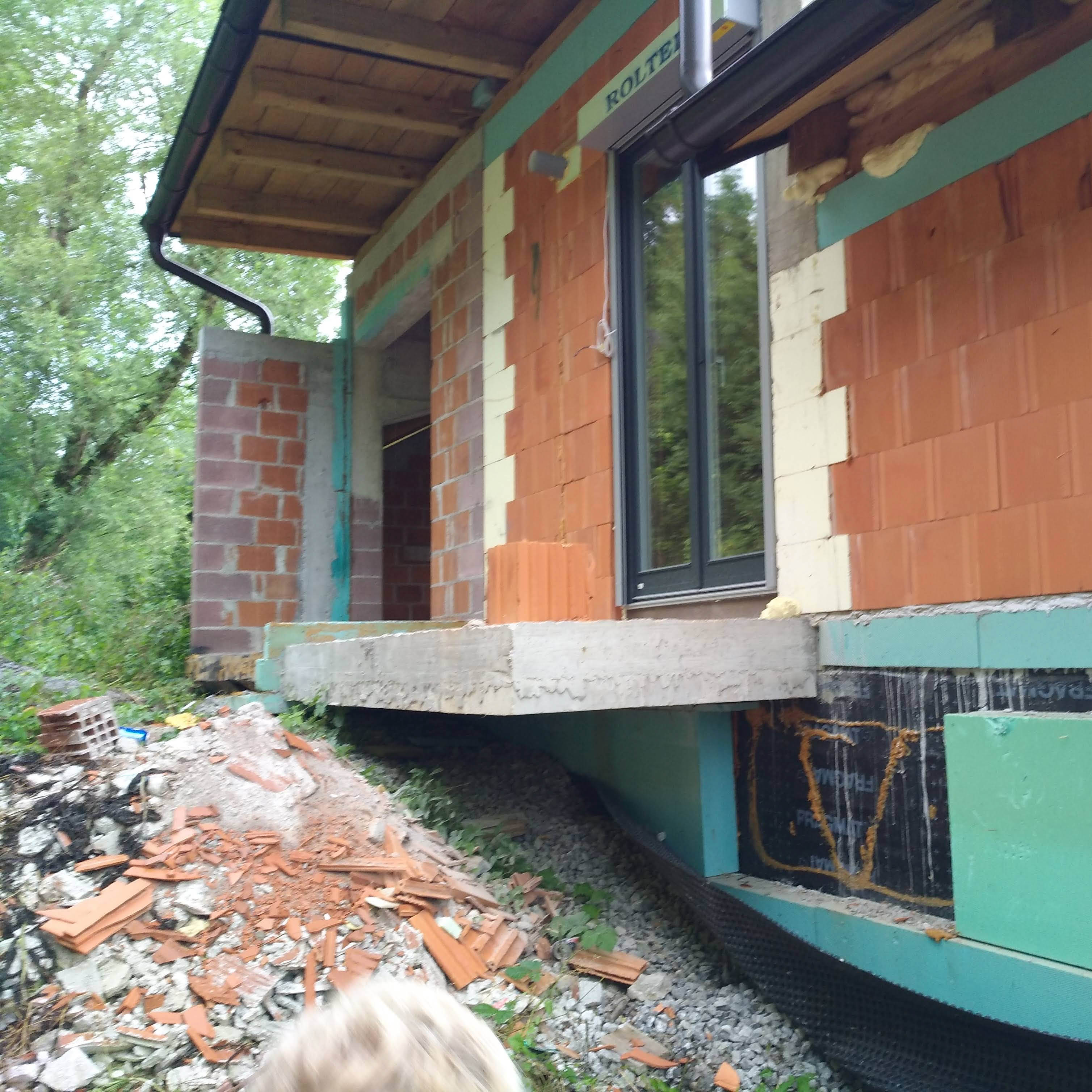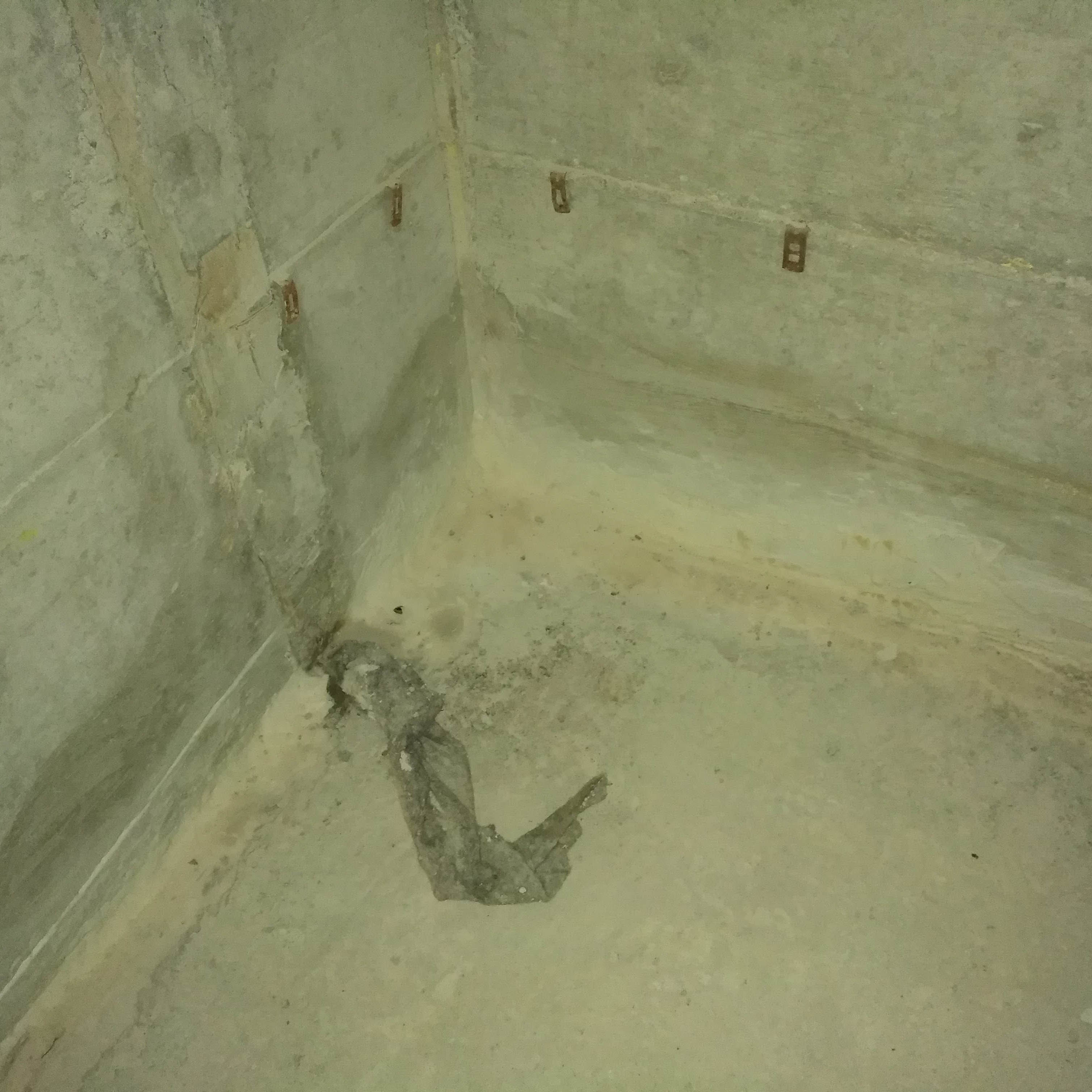 Hidroizolacijska zaščita narejena z bitumenskim premazom in bitumensko ter čepasto folijo ni zadržala prodora vode v kletni del stavbe. Zaradi prisotnosti kovinskih distančnikov, ki so ostali v betonu zaradi opaženja ter vidne segregacije betona, je voda našla pot v notranjost hiše.