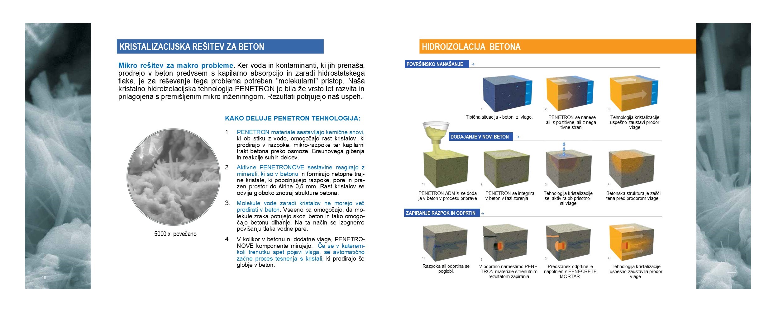 PENETRON-ova tehnologija hidroizolacije preko trajne rasti kristalov v betonu, je razvita na osnovi večletnih